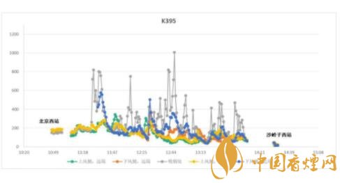 未禁煙的普速列車K395車箱內(nèi)空氣質(zhì)量(PM2.5) 圖片來源中國控?zé)焻f(xié)會(huì)官網(wǎng)