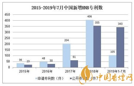2016-2018年國(guó)內(nèi)HNB專利共計(jì)830件,其中2017年、2018年、2019年1-7月年新增HNB卷煙專利數(shù)(公開(kāi)口徑)分別約為61件、355件、343件,技術(shù)推進(jìn)加快。