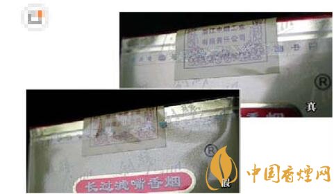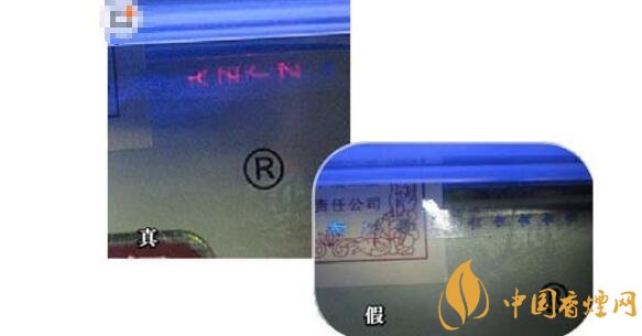 8、真品卷煙的商標(biāo)采用的是凹印,文字邊緣有鋸齒狀;假冒卷煙的商標(biāo)一般采用膠印,文字邊緣無(wú)鋸齒狀。