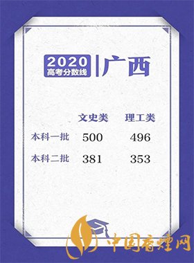 本科一批:理工類496分,文史類500分。本科二批:理工類353分,文史類381分。