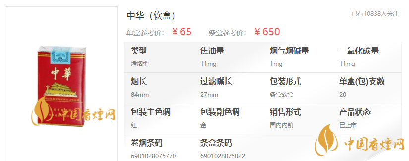 中華細支多少錢一包 中華細支硬盒多少錢一包
