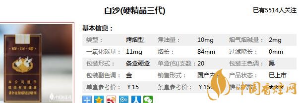 白沙三代多少錢一包 白沙煙精品三代價(jià)格圖片