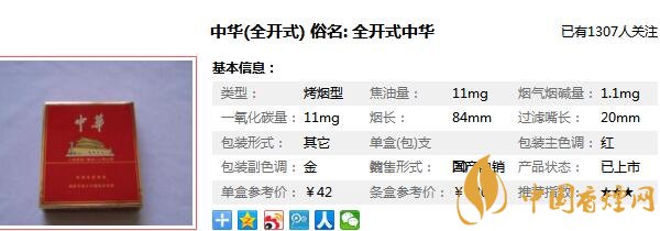 中華全開(kāi)式多少錢一盒 全開(kāi)式中華價(jià)格圖片