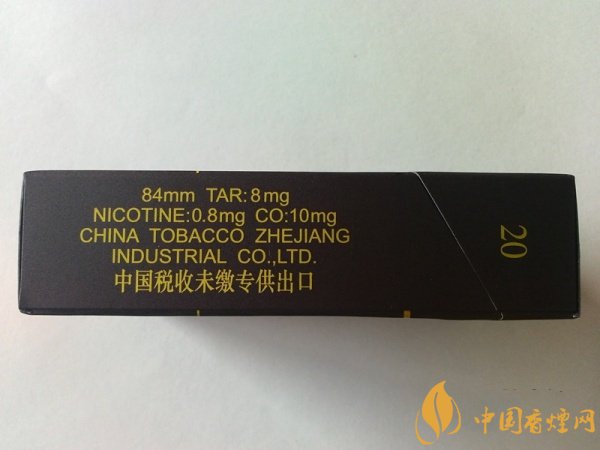 煙長(zhǎng):84mm 過濾嘴長(zhǎng):34mm 包裝形式:條盒硬盒 單盒(包)支數(shù):20