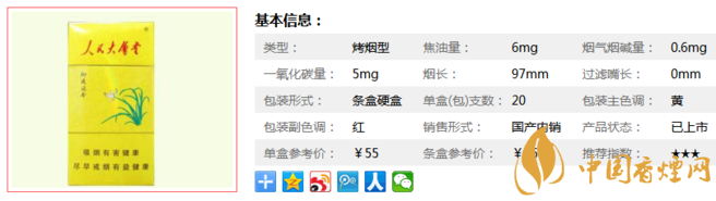 | 類型 :烤煙型 | 焦油量 :6mg | 煙氣煙堿量 :0.6mg | 一氧化碳量 :5mg |