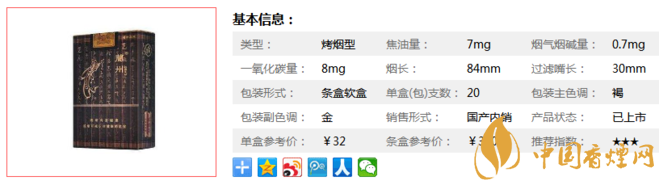 | 類型 :烤煙型 | 焦油量 :7mg | 煙氣煙堿量 :0.7mg | 一氧化碳量 :8mg |