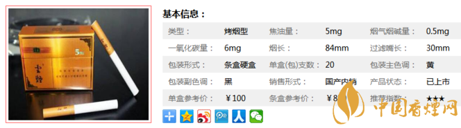 三、云煙5mg印象香煙參數(shù)