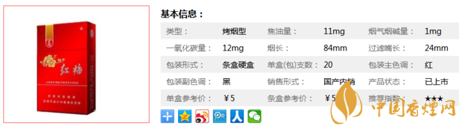 三、紅梅硬春香煙參數(shù)