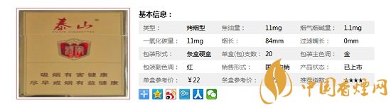 老版的三星將軍焦油量比較高,改版后的泰山將軍雖然口感確實(shí)不如三星將軍,但是即使降焦了味道也比很多20檔的煙口感要好上許多。泰山將軍煙草用料足,燃燒較慢,口感濃郁,算得上魯產(chǎn)高檔卷煙的經(jīng)典作品。下面一起來(lái)看下泰山將軍的具體參數(shù):一盒20支,煙長(zhǎng)84mm,焦油量11mg,煙堿量1.1mg,一氧化碳量11mg。