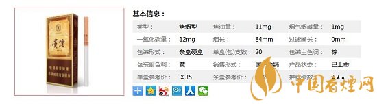 類(lèi)型 :烤煙型 焦油量 :10mg 煙氣煙堿量 :0.1mg 一氧化碳量 :0.2mg