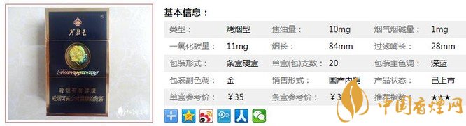 | 類(lèi)型 :烤煙型 | 焦油量 :10mg | 煙氣煙堿量 :1mg | 一氧化碳量 :10mg |