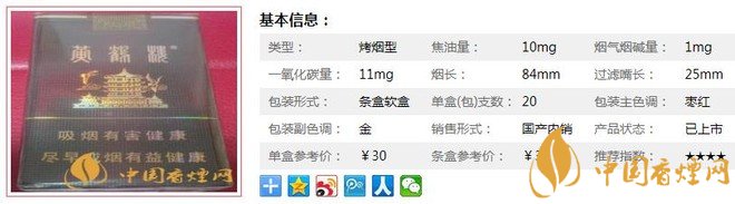 | 類型 :烤煙型 | 焦油量 :10mg | 煙氣煙堿量 :1mg | 一氧化碳量 :11mg |
