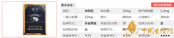 三、嬌子國寶藍天嬌香煙參數(shù)