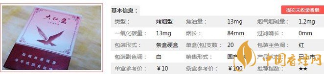 三、大紅鷹50版香煙參數(shù)
