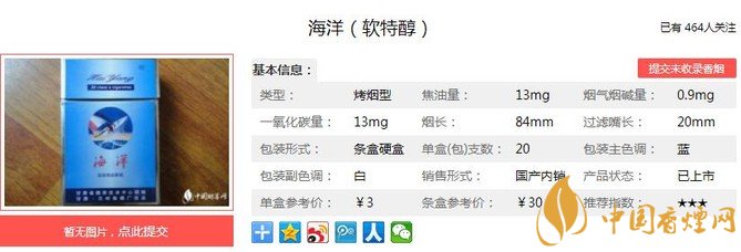 海洋軟特醇煙支長(zhǎng)84mm,過(guò)濾嘴長(zhǎng):20mm,物美價(jià)廉,是蘭州人很喜歡的一種香煙。下面我們一起來(lái)看海洋軟特醇的參數(shù)信息:焦油量:13mg 煙堿量:0.9mg 一氧化碳量:13mg