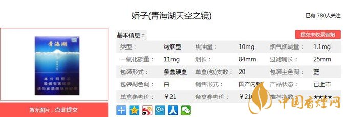三、嬌子青海湖天空之鏡香煙參數(shù)