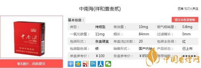 中南海5mg細(xì)支價(jià)格表一覽 混合型細(xì)支煙的引領(lǐng)者