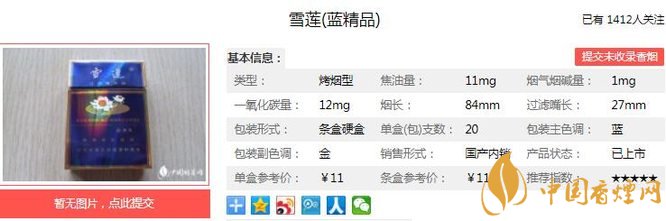 三、雪蓮藍精品香煙參數(shù)