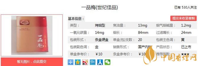 以上便是由香煙網(wǎng)小編為大家介紹的關(guān)于 一品梅世紀(jì)佳品價格及參數(shù) 一品梅世紀(jì)佳品獨家口感分析的相關(guān)信息,想要了解更多有關(guān)內(nèi)容請點擊:泰山八仙過海價格一覽 八仙過海各顯神通