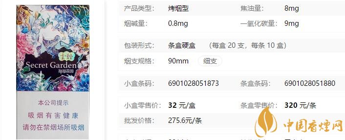 三、云煙(神秘花園)香煙參數(shù)
