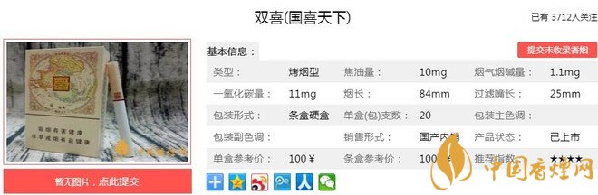 雙喜國喜天下多少錢一包 雙喜國喜天下口感及參數(shù)