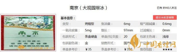 江蘇中煙的細(xì)支產(chǎn)品在國內(nèi)煙草市場上是首屈一指的,可以說是引領(lǐng)了行業(yè)的發(fā)展。從中低端的炫赫門、十二釵系列,中端的雨花石,到高端的沉香、細(xì)支九五和紅樓卷等,價格區(qū)間跨度較大,適合不同的消費(fèi)群體,而且各種產(chǎn)品不但包裝各有特色,其口感也是各有所長,很受煙民的喜愛。下面就由香煙網(wǎng)小編帶大家一起來了解南京大觀園爆冰的相關(guān)信息。