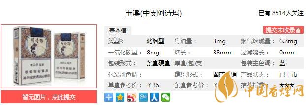 “玉溪(中支阿詩瑪)”是紅塔集團高端突破的基礎價位新品,以“純真年代”的理念和高顏值的形象回歸市場,選用小產區(qū)優(yōu)質煙葉,添加枇杷植物顆粒,味道清香純正、清涼潤喉。經香煙網小編市場調查玉溪中支阿詩瑪售價為35元/包。