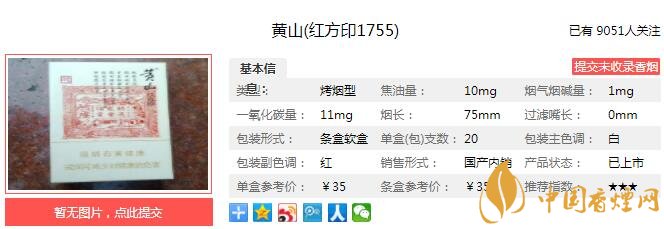 三、黃山紅方印1755香煙參數(shù)