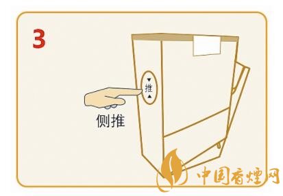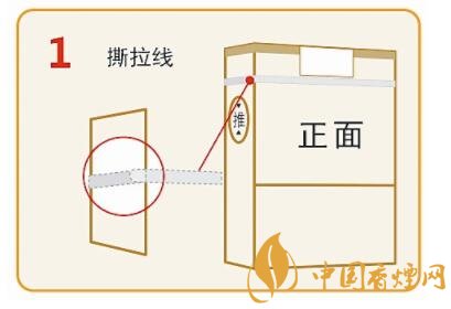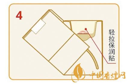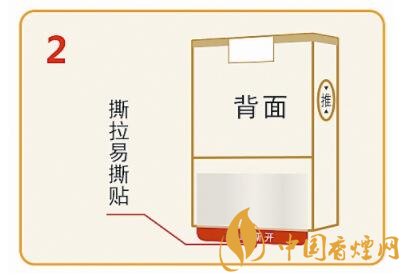 翻轉(zhuǎn)到煙包背面,向上撕開下方易撕貼,輕松撕開下部透明紙。