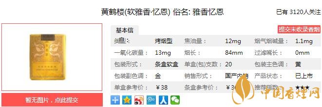 以上便是由香煙網(wǎng)小編為大家介紹的關(guān)于黃鶴樓雅香憶恩多少錢 黃鶴樓情感經(jīng)典的代表作的相關(guān)信息,想要了解更多有關(guān)內(nèi)容請(qǐng)點(diǎn)擊:黃鶴樓細(xì)支珍品價(jià)格50元一包 黃鶴樓細(xì)支珍品口感分析