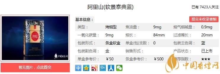一、阿里山軟景泰典藍(lán)香煙價(jià)格