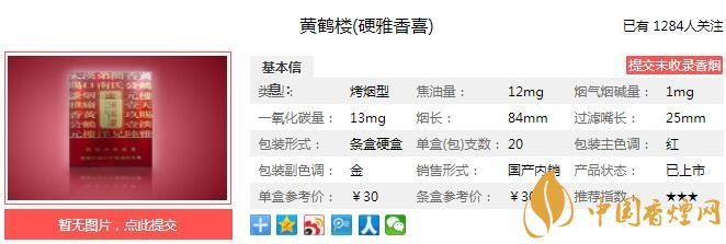 特制功能煙絲則通過天然本草提取物的添加,重在強(qiáng)化香氣質(zhì)和香氣量,為消費(fèi)者提供更為濃郁的抽吸感受。雖然銷售區(qū)域還不夠廣,卻以其所謂“彩芯可調(diào)節(jié)縱向多圓嘴棒技術(shù)”作為最大看點(diǎn)和賣點(diǎn),賺足了煙民的眼球。經(jīng)香煙網(wǎng)小編市場(chǎng)調(diào)查黃鶴樓(硬雅香喜)售價(jià)為30元/包。