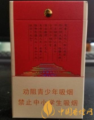 這款煙的外包裝正面主圖正是以紅色線條描繪出的太和殿為背景,配以祥云圖案相佐,底色為乳白,布滿細(xì)致的紋路,有點(diǎn)皮革即視感。紅色的煙蓋上印著金色的人民大會(huì)堂文字商標(biāo),這道搶目的紅色一直延伸到了煙盒背面,背面印著一段文字,出自清代王夫之《張子正蒙注·太和篇》。