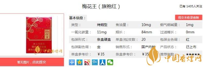 以上便是香煙網小編為大家介紹的關于梅花王旗袍紅多少錢一包 梅花王旗袍紅價格及口感分析的相關信息,看完之后大家是不是對于梅花王(旗袍紅)這款香煙的相關信息更加了解呢。大家還想查詢更多的相關內容歡迎點擊:梅花王硬紅多少錢一包 梅花王硬紅參數(shù)及口感(內附圖片)