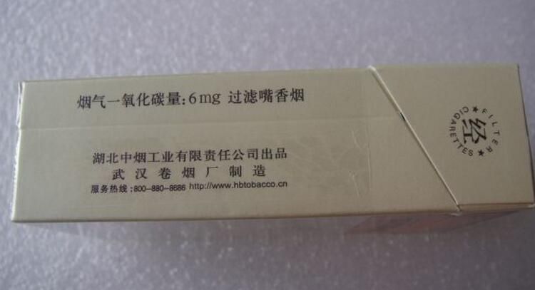 6、黃鶴樓1916圖片底部為品名“黃鶴樓”和鋼印碼‘10203’。一側(cè)為條碼與理化指標(biāo)中的焦油量:10MG 煙氣煙堿量:1.0MG,另一側(cè)為理化指標(biāo)中的煙氣一氧化碳量:10MG和客服熱線與公司名稱、網(wǎng)址。