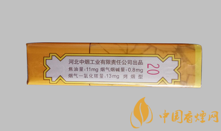 類型 :烤煙型 焦油量 :11mg 煙氣煙堿量 :0.8mg 一氧化碳量 :13mg