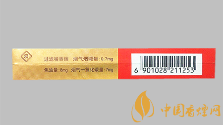 類(lèi)型 :烤煙型 焦油量 :8mg 煙氣煙堿量 :0.7mg 一氧化碳量 :7mg