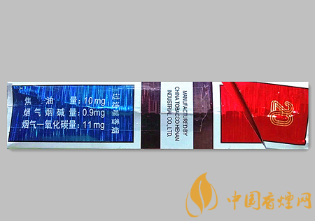 類型 :烤煙型 焦油量 :10mg 煙氣煙堿量 :0.9mg 一氧化碳量 :11mg