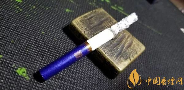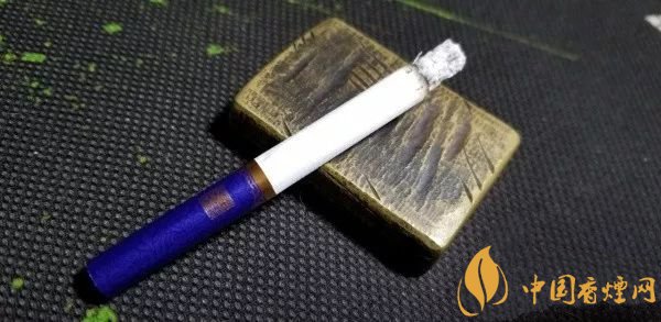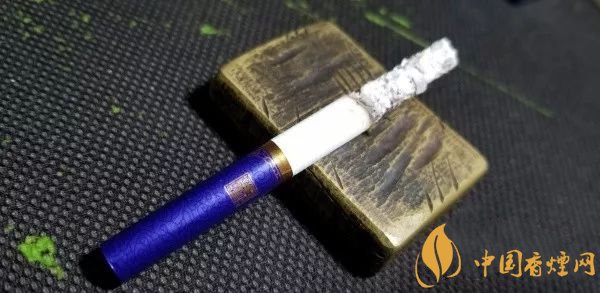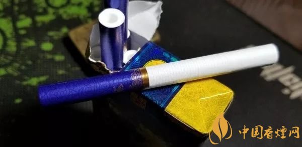 拉出,光面藍(lán)紫色的水松紙,帶有深色的云紋,與煙盒的顏色和紋飾相同。濾嘴底部,一圈粗粗的金色圓環(huán),其上,是金色的水波紋路。一面是真龍兩字,另一面是一方“南海龍王”的印章。整體,顯得典雅內(nèi)斂。