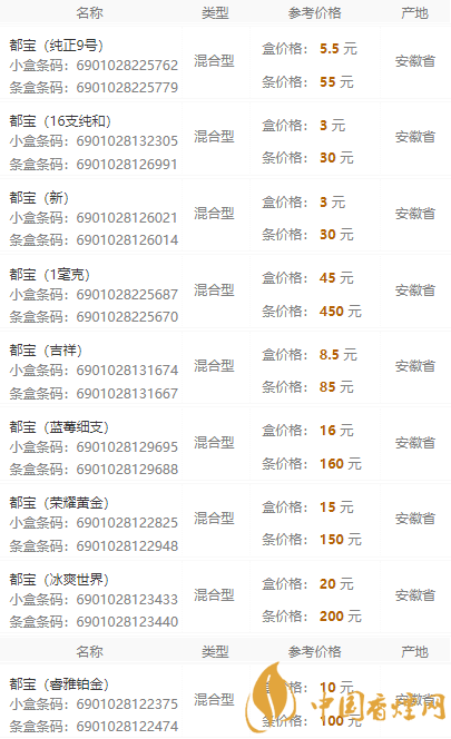 都寶香煙來了!“都寶”牌卷煙由安徽中煙工業(yè)有限責(zé)任公司出品的香煙,這個牌子擁有國際品牌血統(tǒng)和先進工藝的低焦油混合型卷煙,那么,您知道2020都寶香煙價格表圖嗎?趕緊來香煙網(wǎng)看看吧!