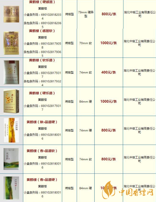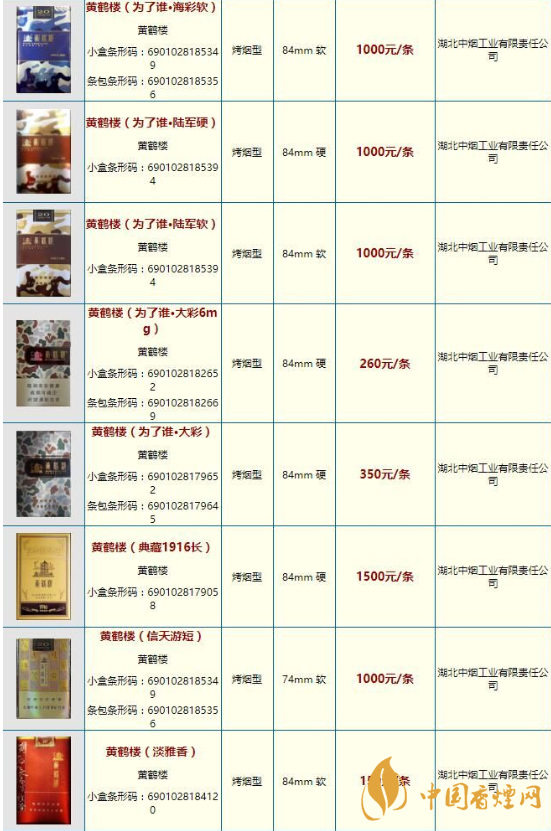 黃鶴樓香煙價(jià)格表圖一覽