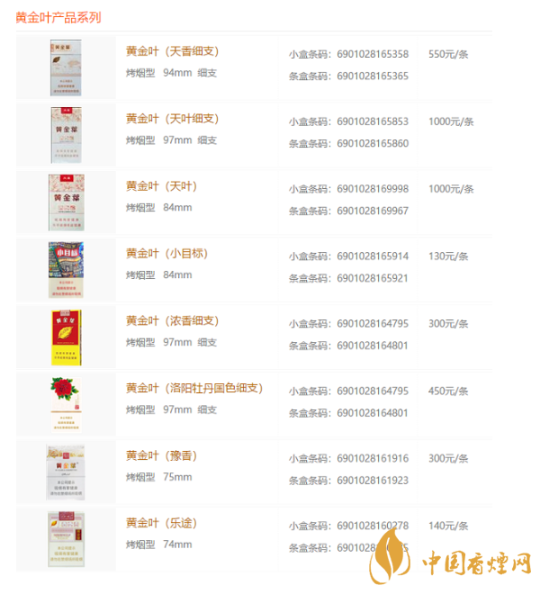 黃金葉天葉香煙有三個(gè)品種,分別是天葉、小天葉以及小天葉紅旗渠,一包價(jià)格分別為100元、80元、80元。