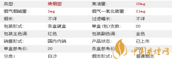 白沙紅運(yùn)當(dāng)頭香煙參數(shù)