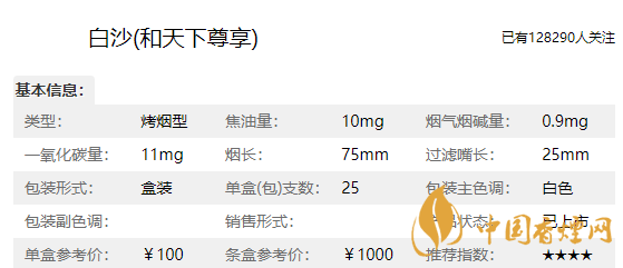 | 類型 :烤煙型 | 焦油量 :10mg | 煙氣煙堿量 :0.9mg | 一氧化碳量 :11mg |