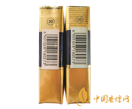 真 假 商標紙側(cè)面印刷工藝對比:真煙商標紙側(cè)面條紋較窄、顏色較淺,圓圈和數(shù)字“20”顏色較深、位置較低,條形碼位置稍低;假煙商標紙側(cè)面條紋較寬、顏色較深,圓圈和數(shù)字“20”顏色較淺、位置偏高,條形碼位置稍高。
