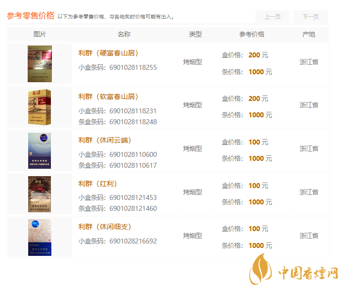 利群高端香煙價格表2021