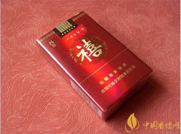 這款八喜香煙的煙盒是大紅色軟包,煙盒正中是一個喜慶的團(tuán)花,里面是一個淡金色的大“禧”字。左上角是豎寫的“8喜”,中間是“八喜臨門”小字。背面寫了這八句詩,錫箔紙上也有“禧”字水印,封簽上也有“禧”,處處透著喜慶。了解它的外觀我們來看看這款泰山八喜香煙多少錢?據(jù)小編調(diào)查得知在八喜香煙價格表圖中銷售參考價為18元/盒。