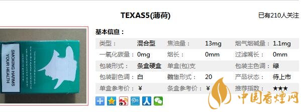 以上內(nèi)容是由香煙網(wǎng)小編為大家收集以及整理的關(guān)于,texas5香煙多少錢相關(guān)信息,想要了解更多信息詳情請點擊:日本香煙哪個好抽 。