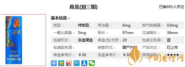 真龍劉三姐香煙參數(shù)信息
