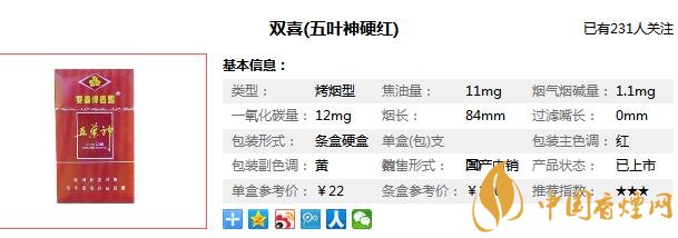 五葉神卷煙品牌作為中國高檔烤煙型卷煙品牌,創(chuàng)立于1999年,以先進的科學(xué)技術(shù)為依托,以升級中國卷煙品質(zhì)為己任,贏得了消費者的認(rèn)同,那么在對五葉神香煙價格圖片進行分析之前,先來看一看這款五葉神2000多少錢一包,五葉神2000其實就是現(xiàn)在的雙喜五葉神硬紅,它的零售價為22元/包。